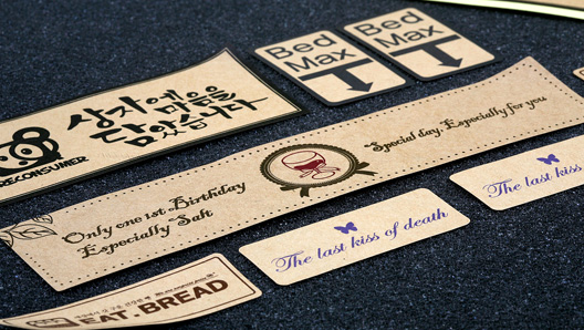 일반적으로 갈색또는 박스색깔의 용지로 박스라벨지 또는 D.I.Y 제품또는 에코제품에 널리 사용되어지는 스티커