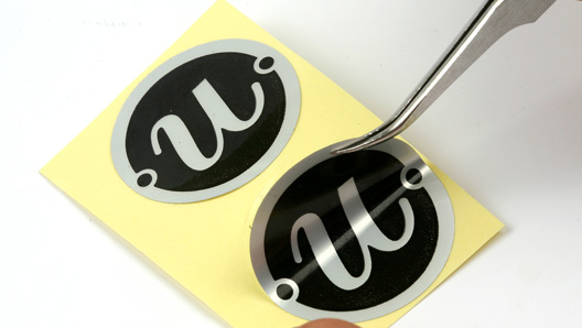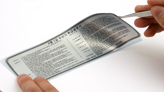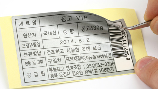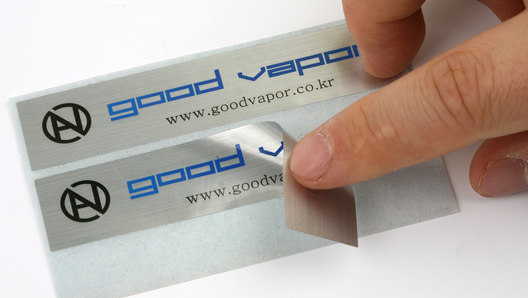 은색 메탈 느낌의 스티커로 가전제품 사용설명 라벨용 또는 알루미늄 스티커 대용으로 주로 사용되어짐.