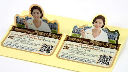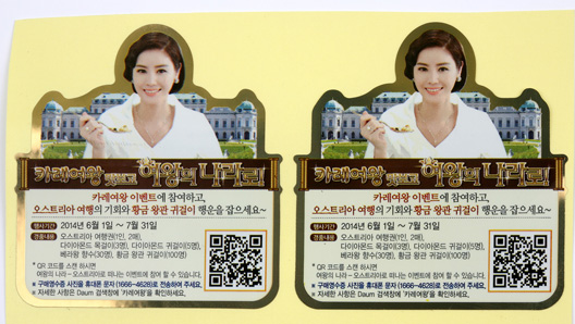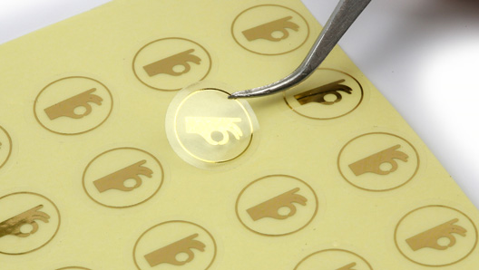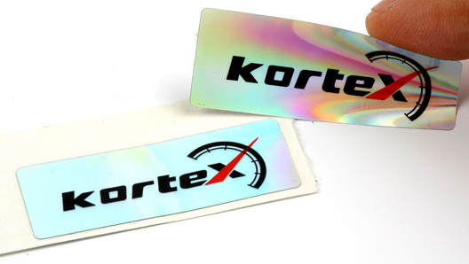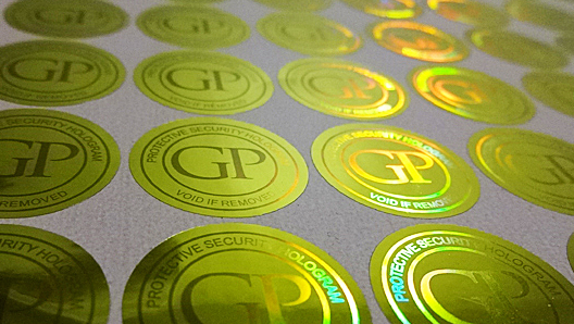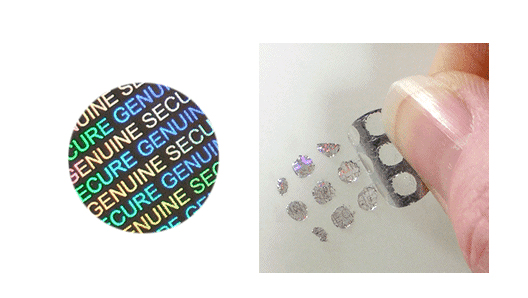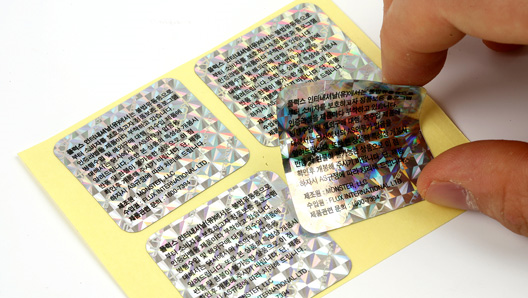 제품 자체가 홀로그램 용지에 인쇄 또는 박으로 처리, 정품 인증 스티커 또는 팬시용 스티커로 많이 이용 되는 스티커